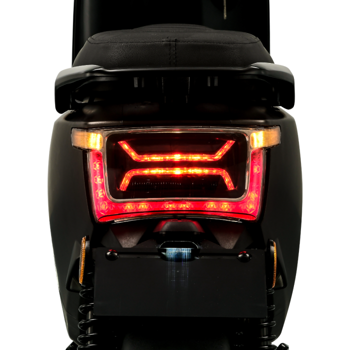 De IVA E-GO S4 2.0 e-scooter heeft van voor tot achter fraaie LED verlichting. Zelfs de kentekenplaatverlichting is met LED uitgevoerd. Het achterlicht is voorzien van een prachtige chique rode streep aan licht (LED tube), en de koplamp heeft een grote vierkante ring met LED tube dag rijverlichting. Dit zorgt voor een fraai en modern gezicht, en in het verkeer ben je tevens een stuk beter zichtbaar. De LED koplamp zelf is super fel en daardoor heb je een perfect zich in het donker.